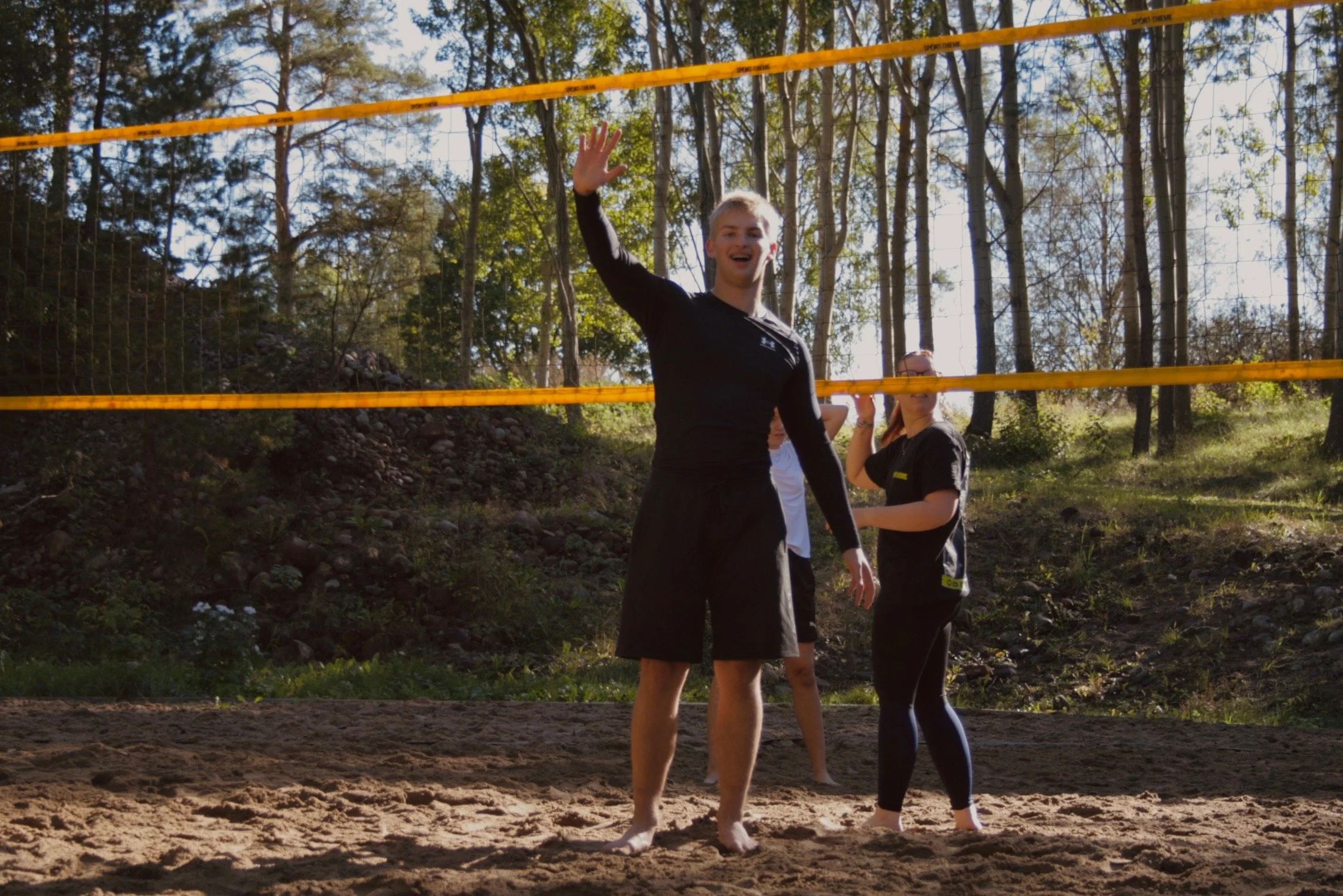 Finns ett aktivitetsområde med beachvolleybollplaner, fotbollsplan, frisbeegolf och ett gym
